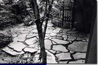 住まいでは、表通りから玄関までのアプローチや庭は、「用と景」の妙を象徴する空間です。一歩ずつゆっくりと進んでほしい場所と、さっと通過すればよい所とでは、飛石の打ち方を違えてあります。石の配置を「真行草」にたとえるなら、客人を迎える玄関には切石を整然と並べた「真」の空間。直線的な構成が「格式」を表します。庭の奥へと誘う苑路は「草」の空間。自然石で、やさしい曲線を活かします。真と草を繋ぐ「行」の空間は、切石と自然石の組み合わせを楽しんでいただけるよう配置します。つくり手の美意識が問われる空間です。